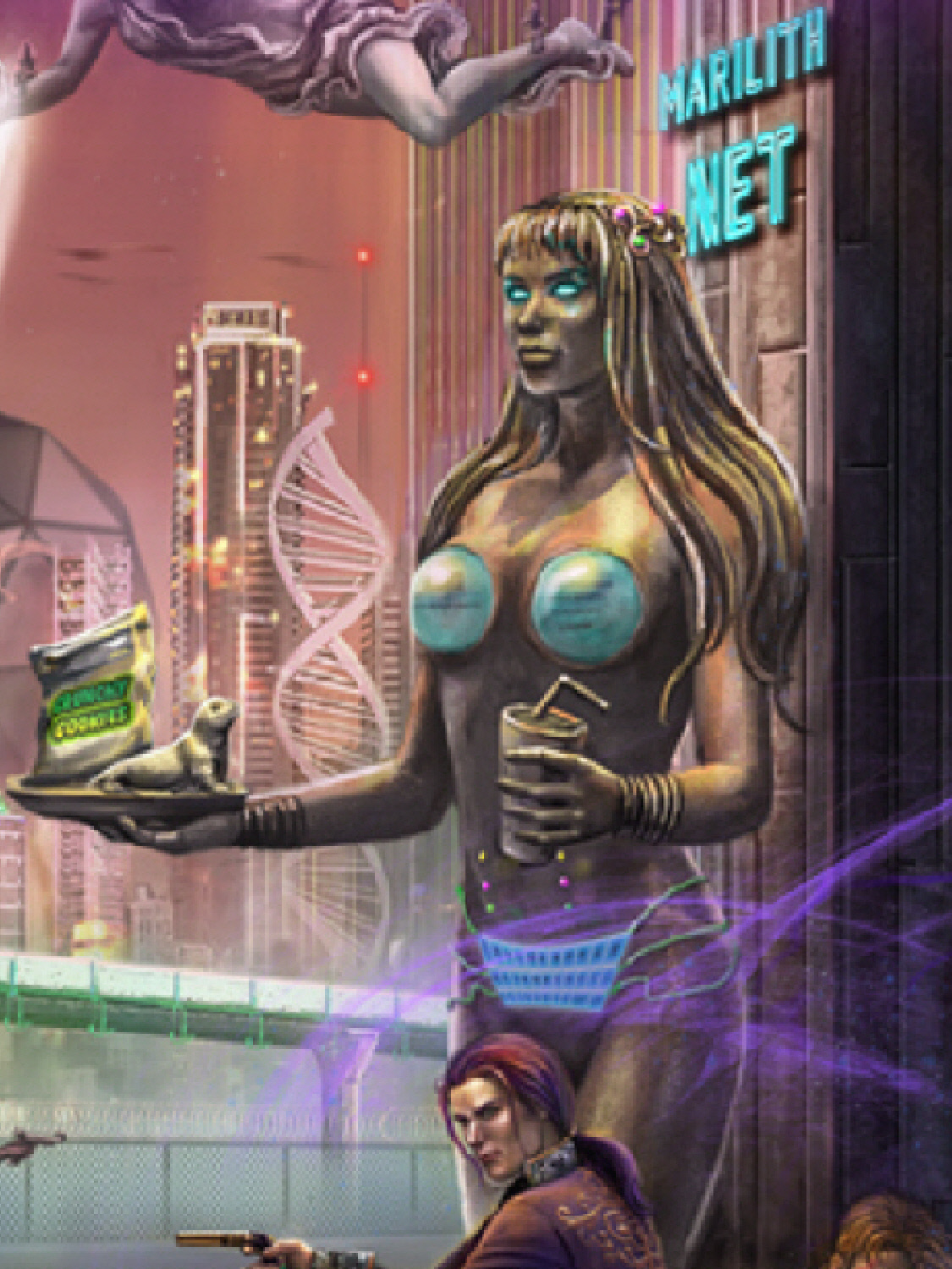 Marilith returned to Xaphan space. spiteful and bitter. Instead of fading back into court life on Xandarr, she embarked on a long crusade against the League, mostly to get as near to Davage as she could. Mounting an assortment of vessels always known as “Bloodsimple” she took on Davage and the Fleet in a protracted 70 year campaign. She proved herself to be a capable ship’s captain and, though she lost most of her battles in space with the Fleet, she always managed to elude capture and escape to the shadows to try again. Her pure persistence and tenacity made her a Xaphan hero. Eventually Marilith came to grips with Sygillis of Metatron, an ex-Black Hat who had captured Captain Davage’s heart. There in a terrible battle on the distant world of Gelt, Sygillis killed Marilith and impaled her, along with all her henchmen, on a Silver tech stake. Princess Marilith was tall and statuesque. Being of the House of Xandarr, she had bright blue hair in their tradition. She generally wore the light, revealing clothing indicative of that worn on Xandarr that often failed to account for the demands of modesty. She carried a mystical dagger of silver and gold given to her as a wedding present from her father known as Moonglow. Her stated goal was to plunge Moonglow into Captain Davage’s chest. Her usual practice was to scratch the name “Bloodsimple” into the bridge bulkhead with her dagger. It was said, doing so imparted an odd sort of unlife into the vessel.Marilith was known for coming at the League in a variety of warships. Her favorite was the large, basttleship-like Ghome 52. Her vessels usually lasted one or two engagements before they were shot out from under her.
