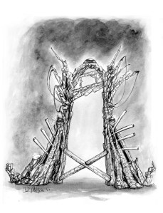 I dreamed up a City of Many Forms where the Kestrals held sway. It was intended to be an insane city of strange proportions and mind-bending intent with an unguarded pathway leading to the Horned God’s Secret-Talker. I made it as strange and confusing as I could dream up. It was supposed to be a window-dressing getting the reader from points A to B, a carnival ride through the Fun House to the Secret-Talker, nothing more.But then I wondered …