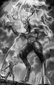 The Horned God: The Horned God started out life as a benevolent elemental spirit of lightning who had been summoned by the Kestral Oligarchy and forced to do bad things. In the first drafts Carahil and the Horned Gods were friends, though they served differing factions. I found the Horned God to be unbearably boring, so I eventually “upped” the voltage and made him one of the main bad guys of the story soaked in evil.