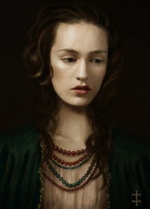 Their dress consists of a homespun white smock that extends down to their knees. They wear a belt of red and green shells and a number of small necklaces of red and green wooden beads. Merians never cut their hair for they believe their ability to see their Star comes from their hair. They hold back their masses of hair with pins and combs. They rarely wear shoes. On top of everything, they wear a green brocade cloak lined with gold cloth. They write in a secret language known only to them. In some parts of Esther and Barrow, Merian writing is thought to bring good luck, and they are sometimes paid to decorate various vessels and buildings.Though threadbare and impoverished, it is said in some quarters that the Merians are much more capable and advanced than they let on. Some say that their belts allow them to pass unseen if they wish, and their beaded necklaces shield the wearer’s mind from attacks and illusion. There is also the various tales that the Merians may travel virtually anywhere they wish at the blink on an eye via an arcane bridge called The Merian’s Road. Xaphan Traders often tell tales of selfless, green-robed people who walk into peril to rescue those in need and that they travel by way of a “Road” wreathed in fog.