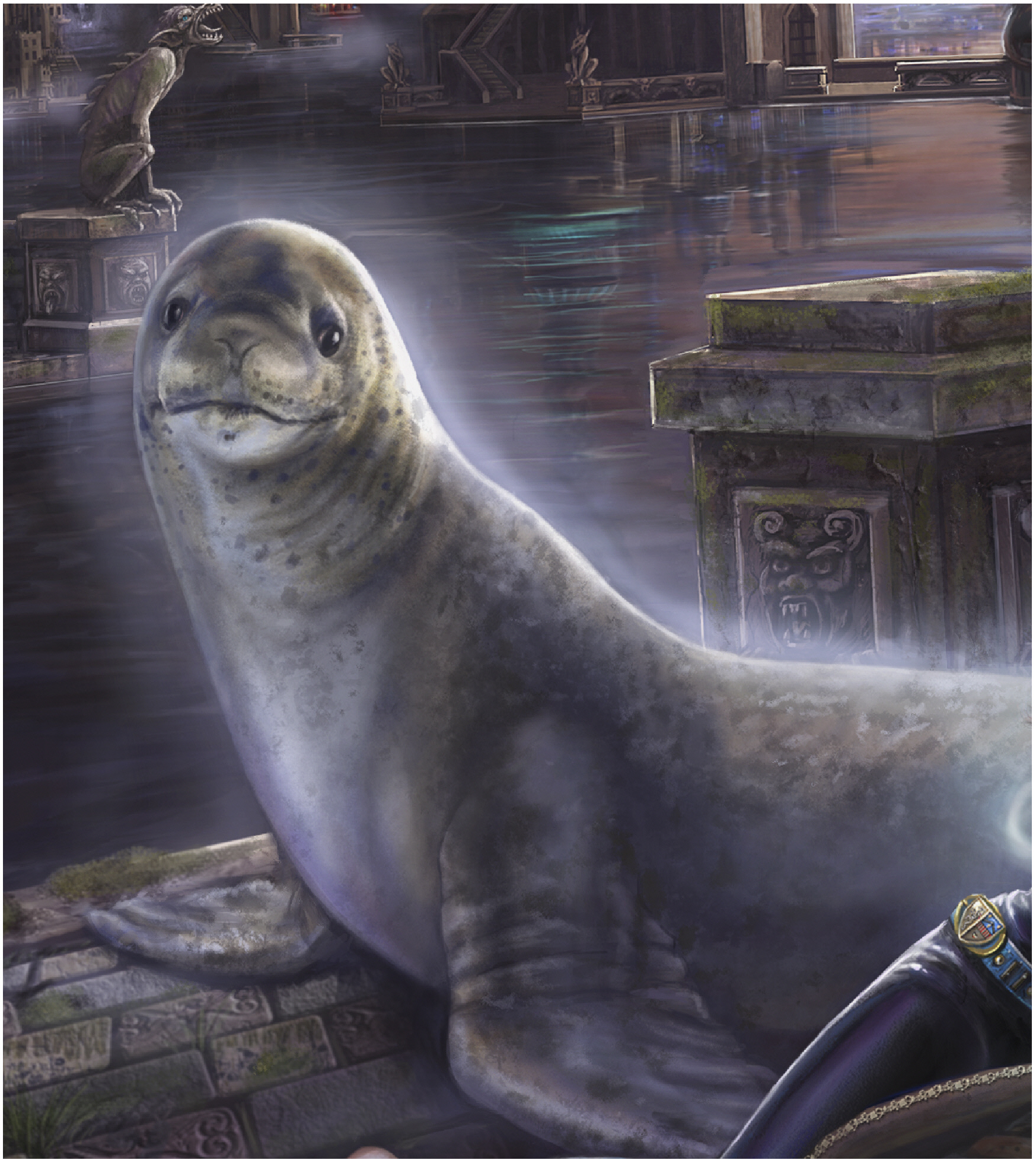CARAHIL 1: The original Carahil, or Carahil 1, appeared only for a brief period of time in LoE Book 1. He was a scavenger living in the dregs of Sygillis of Metatron‘s temple, eating the dead bodies she created in abundance. Occasionally, when driven by hunger, he would take one of Sygillis’ Hulgismen guards. He was basically a big rat. When Syg was turned from evil and the Shadow tech of her temple changed to Silver, Carahil too was enlightened. He grew in size, became intelligent and powerful with Silver tech. He carried Captain Davage aloft into battle and, when Syg’s temple escaped the desolation of Metatron, Carahil 1 escaped as well and was, from the reader’s perspective, never seen again. We can only hope he had a happy ending out there somewhere along with his friends. Notice he is quite large, and has a natural, somewhat predatory appearance diminished a bit with a benevolent expression. Aside from his size, strength and ability to fly, Carahil 1 had none of the amazing abilities Carahil 2 would one day possess. CARAHIL 2: Though he only knew him for a short time, Carahil 1 had a great influence on Captain Davage. Davage would often speak of Carahil at dinnertime, how he had admired him and considered him a benevolent soul and a friend, and that he missed him. Sitting at the table listening to all of this, was Captain Davage’s sister, Lady Poe. As a Silver tech female of growing power, Lady Poe loved creating little animals in Silver tech, and she was inspired by her brother’s tales. She decided to give Carahil back to Davage as a gift. She spent months collecting thoughts and recollections direct from Davage’s head, placing them into an ancient Vith fountain in the Telmus Grove. As she worked, Lady Poe became particularly devoted to the “Carahil Project” and was determined to make him “something special”. She gave him great wisdom, knowledge of magic and lore, and even threw in knowledge of cooking, sewing, botany, alchemy, and animal husbandry. Still not satisfied, Lady Poe wanted to give her masterpiece “a proper heart” She wanted him to be kind, to have a love of life, though she didn’t quite know where to get such a thing. She would soon have an answer. The kitchen staff had an old bloodhound they called “Cookie” who was known for her gentle disposition and willingness to mother lost animals. The staff often brought her lost kittens, and Cookie would mother them until they were big enough to fend for themselves. Cookie was old and, as she lay dying, Lady Poe took her essence and placed it into the fountain as the final ingredient. Soon, Carahil 2 emerged from the fountain.Lady Poe was delighted with Carahil and considered him to be her first child. She created a number of medallions which would summon carahil when needed. Carahil 2 brimmed with power. He loved rescuing small animals and nursing them back to health. He also had a love of jokes and pranks. His favorite prank was stealing gowns from Countess Sygillis’ wardrobe and hanging them from a flagpole.