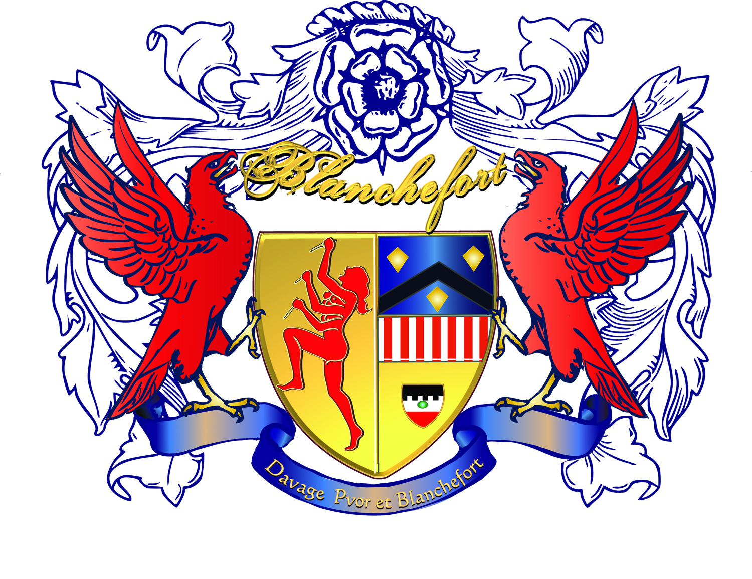 The Coat of Arms of the House of Blanchefort. The Rose has been a common symbol of the Vith for centuries. Also, the image of a Haitathe Warrior can be found on many Vith CoA’s. (Carol Phillips)