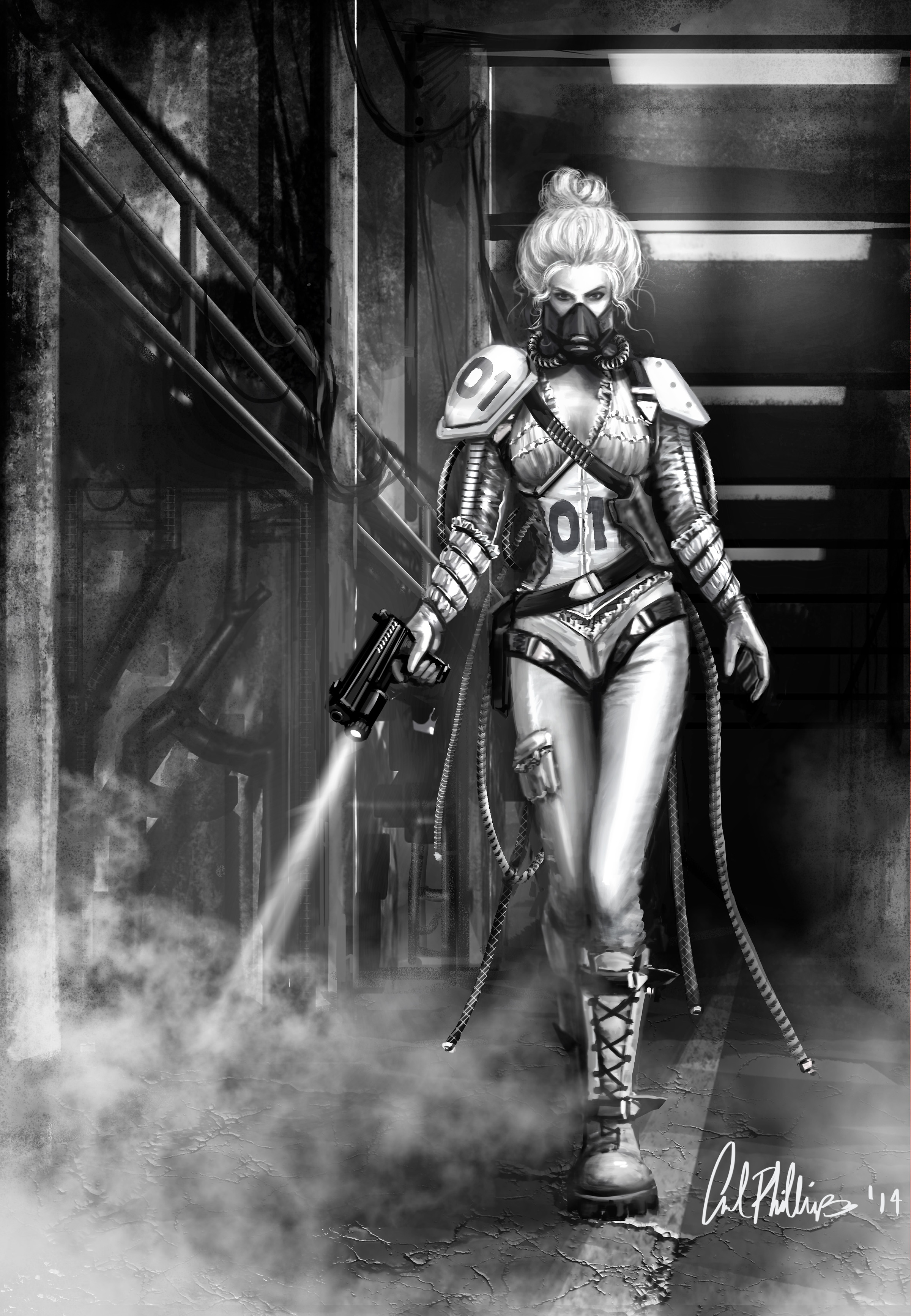 The mysterious Woman with the Gun appears at various spots in LoE Book VIII: The Shadow tech Goddess. She is a shadowy character whose identity and motives are unknown. Paymaster Stenstrom, the hero of the tale, believes he encountered her in the forbidden Ruins of Clovis, though his memory of his time in the Ruins is suspect at best. Searching his thoughts, he remembers encountering a woman in the dark under Clovis. He remembers her saying something, though most of what she said is lost to him. The only thing he could remember is that she claimed to be his wife, and that she had depended on him doing something, and that he had failed. Though he can’t recall what she looked like or even the sound of her voice, her memory nevertheless haunts him.Later, Lord A-Ram and his fiancé, Lady Alesta of Dare, encounter her, and it’s through their account that a description of her appearance is made. Lord A-Ram had trouble sleeping one evening. As he lay there in the dark of his quarters aboard the Seeker, he became aware that someone was in the room with him. It was, according to A-Ram and Alesta, a tall woman with fair hair wearing some sort of flight suit complete with a life support harness and dangling air hoses. She wore thick treaded boots and carried a gun in a shoulder holster. That’s what A-Ram remembered most about her, her gun. Alesta recalled her hair was set and styled up, as if for an evening out despite her utilitarian garb.