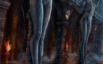 Look how the warm fire light brings out the depth of the Temple, lighting up the back tiers giving the viewer a hint how wide the Temple is, while the cooler lighting provides a sense of loftiness and imposing height. With the lighting in place, you can see what was previously hidden behind the more prominent tiers of statue and pillars. With the orange light, the Temple looks more unsettled, more wild and dangerous, which is the impression the viewer should be getting. I can only imagine what the scene will look like when the character layers are turned on.